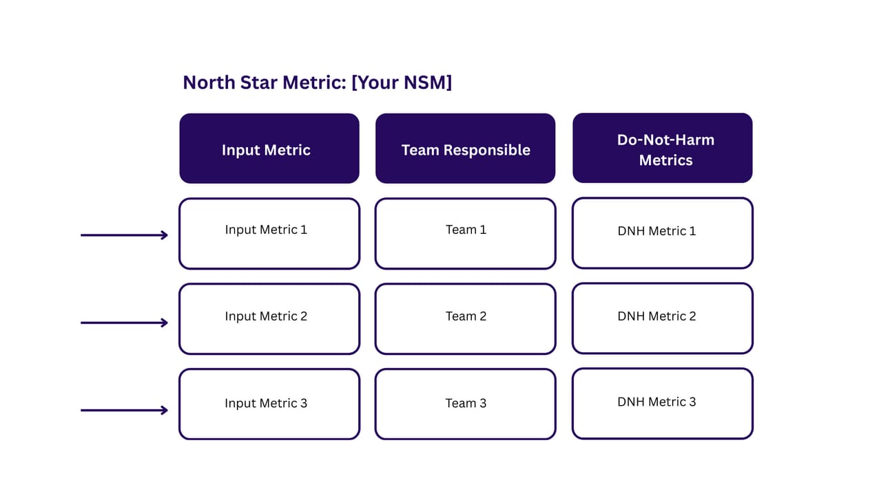 Each team should have input metrics that align with their function and contribute to the NSM. For example: