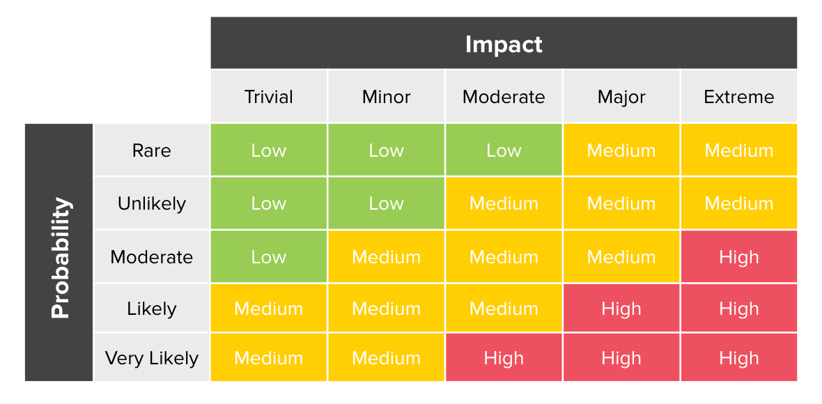 Example: A new integration failing during testing might be âVery Likelyâ if it's complex or involves new technology.